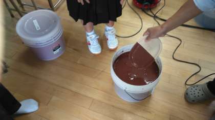 美術科の先生のご協力のもと、 素焼きした皿に撥水剤を施しました。