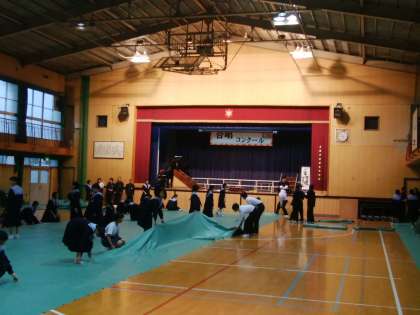 明日の合唱コンクールのために、係生徒の皆さんが会場準備をしてくれています。