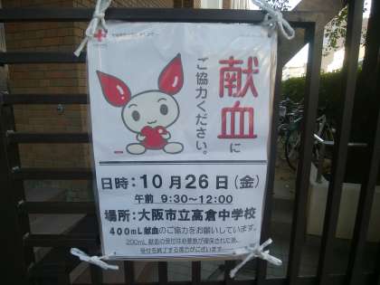 本日、文化発表会の午前中にPTA献血運動も行っています。ご協力よろしくお願いします。