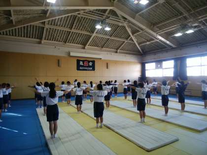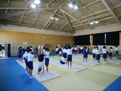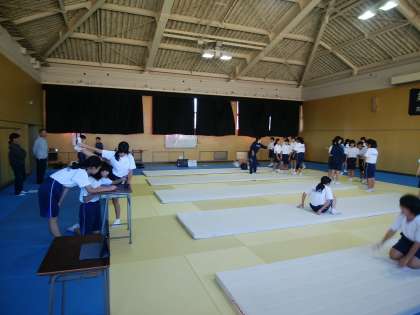 本日より各教科の研究授業週間です。2時間目は1年生女子のマット運動です。