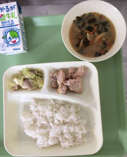 11月26日(月)給食献立 公開日 2018/11/26 更新日 2018/11/26 お知らせ 鶏肉のしょうゆマヨネーズ焼き、なめこのみそ汁、キャベツのいためもの、ご飯、牛乳となっております。 いいね(0)