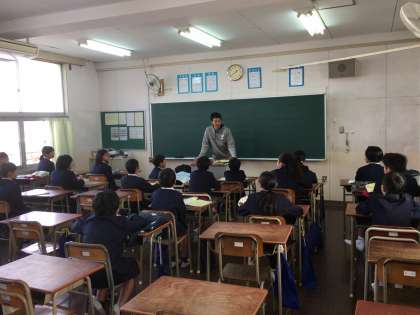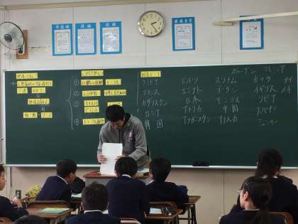 社会の授業の授業です。地図帳を使って、世界の国について勉強していました。