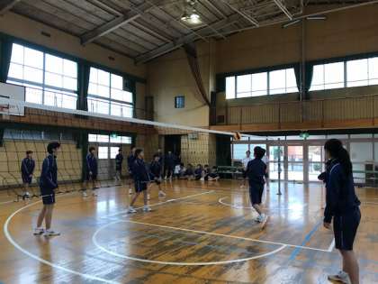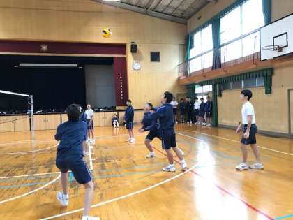 今日の3年生の体育は、男女合同のバレーボールの授業です。