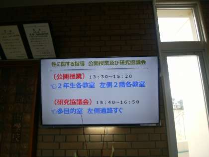 性に関する指導、公開授業 公開日 2018/12/12 更新日 2018/12/12 お知らせ 本日午後から、2年生、全クラス対象による、性に関する指導の公開授業を行います。他校より65名の参加予定です。 いいね(0)