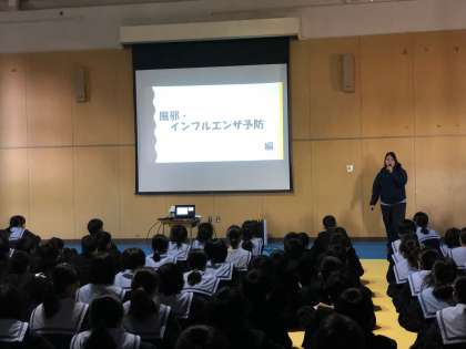 保健委員と先生が出演した動画をもとに、風邪・インフルエンザ予防について学びました。