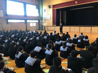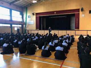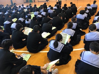 3時間目の清掃を終え、4時間目は体育館で休暇事前指導を行いました。