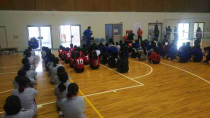 今日はオータムカップカップが開かれてます。参加校は7チームのトーナメント戦です。第1試合のはびきの埴生学園との試合では2セットマッチの得失点差で