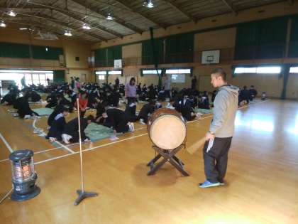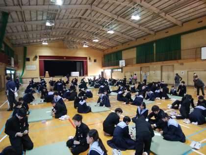 太鼓の合図で読み手が読み始めます。 1回戦争、終了しました。