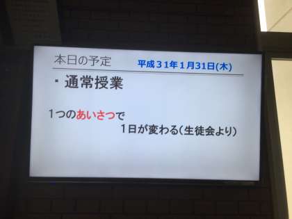 1月31日(木) 公開日 2019/01/31 更新日 2019/01/31 お知らせ 本日、通常授業です。 1年生は本日まで学年閉鎖です、自宅待機をしてインフルエンザの感染を抑えましょう。 いいね(0)