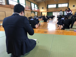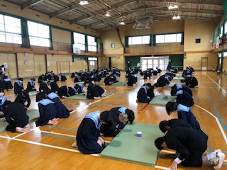 1年生は百人一首大会です。生徒の正々堂々戦う姿に、読み手の教師の姿勢も改まります。