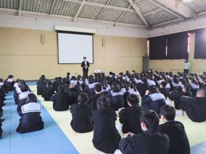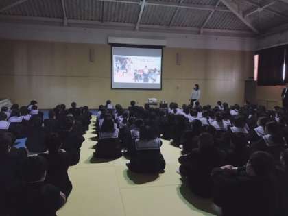 6時間目、1年生は格技室で人権学習を行いました。