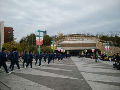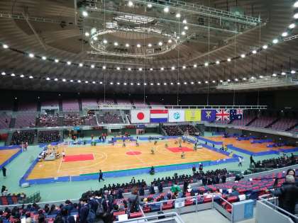 2年生は、中央体育館で開催の国際車いすバスケットボール大会の観戦に来ました。日本対オーストラリアです。