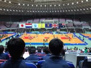 福祉教育として、車いすバスケットの試合観戦に来ています。