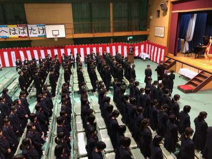 閉式の辞を終え、PTAの方から卒業生へ記念品贈呈がありました。