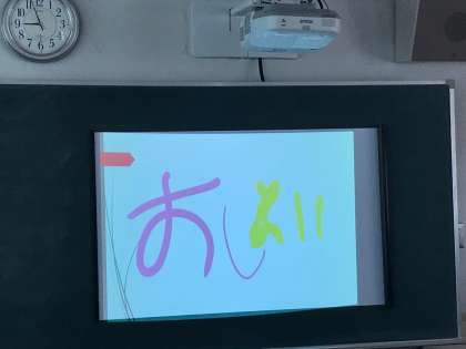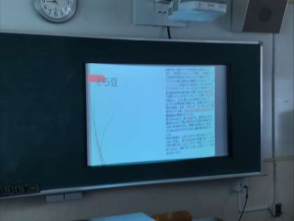 今学期の学習園での活動が終わり、事後学習でタブレットを用いてパワーポイントを作成しました。本時は発表会です。発表にはたくさんの先生方が参観に来られました。