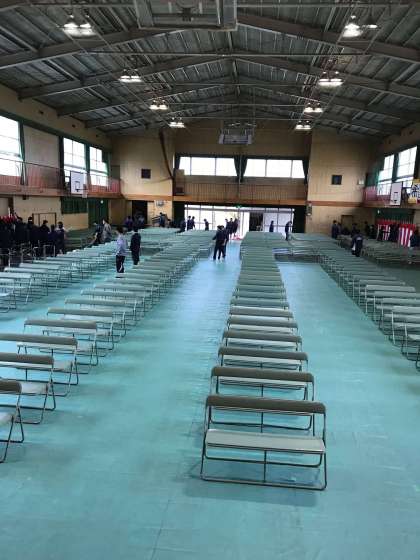 新3年生は体育館で会場準備をしました。明日行われる入学式の為に心を込めて設営しました!
