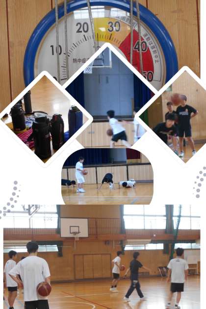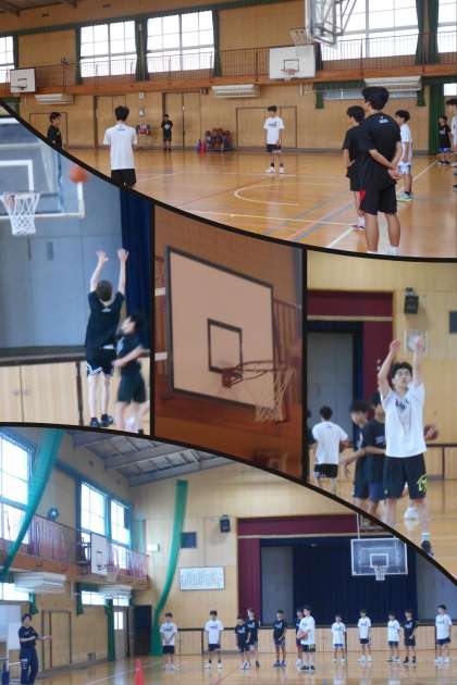 体育館では男子バスケットボール部が熱心に練習を行っていました。フロアーにボールが弾む音、シューズが擦れる音にその熱心さが伝わってきます。