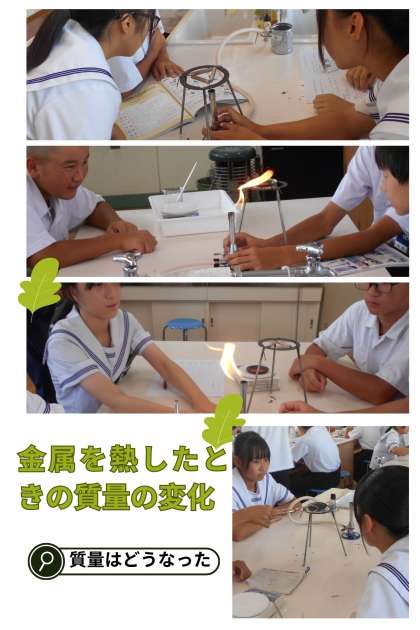 2年生では、化学変化する物質どうしの質量の関係について実験を行い学びを深めていました。