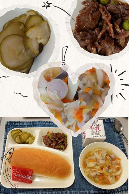 今日の給食(9月19日) 公開日 2025/09/19 更新日 2025/09/19 給食 ・牛肉のデミグラスソース煮 ・ウインナーのスープ ・きゅうりのピクルス ・コッペパンといちごジャム 今日は、牛肉がメニューにあります。 家では野菜炒めか肉じゃが、カレーくらいしか牛肉のレパートリーがないです。 給食は普段食べないメニューが登場するので毎日楽しみですね。 いいね(0)