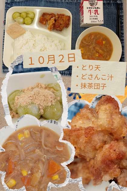 今日の給食(10月2日) 公開日 2025/10/02 更新日 2025/10/02 給食 本日の献立は、「R6年度学校給食献立コンクール優秀賞」のものです。 とり天(大分県)、どさんこ汁(北海道)、抹茶団子(京都府) 献立のねらいは、「自分たちの住んでいる日本の郷土料理を楽しんでもらい、旅に行った気分になってほしい。」とのことです。 私は「どさんこ汁」が好みでした。みそ汁ですが、ニンニクとごま油で風味づけされてラーメンのスープのようでした! いいね(0)