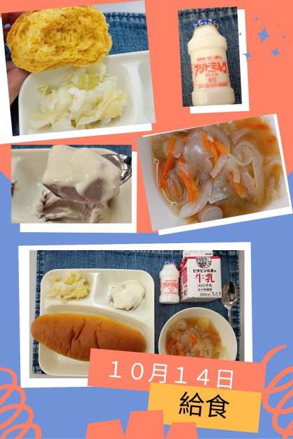 今日の給食(10月14日) 公開日 2025/10/14 更新日 2025/10/14 給食 パンプキンパン、かつおのガーリックソースかけ、ウインナーとじゃがいものスープ、キャベツのサラダ、発酵乳 かつおにかけられているガーリックソースはマヨネーズの味ですが卵を使用していません。 なのにとってもコクがあります。 風味付けのニンニクが効いています! いいね(0)