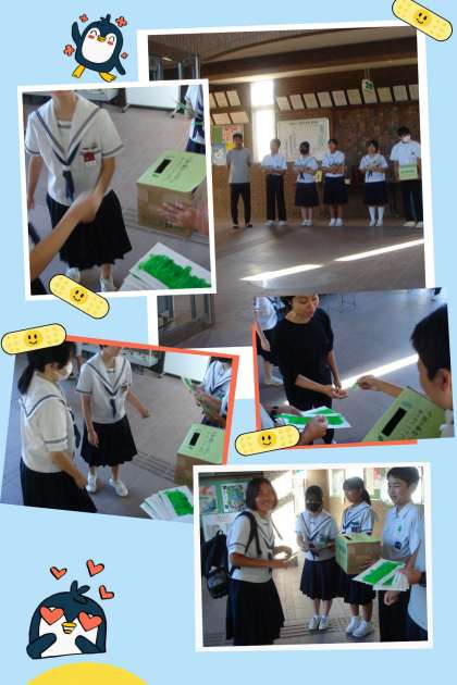 今朝も生徒会役員が玄関ロビーで呼びかけを行うと、登校する多くの生徒が足を止め、温かい気持ちを寄せてくれました。