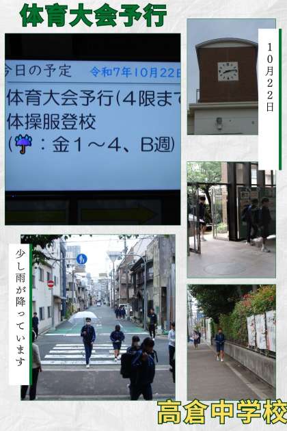 朝の玄関では、体操服姿で傘をさしている生徒の姿も見られました。