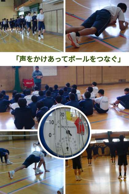 1年生の体育の授業で『バレーボール』を行いました。 準備はすべて生徒たち自身で行います。支柱とネットを張り、試合ができるコートを作ります。 仲間とコミュニケーションをとることで、安全かつ早く準備ができます。 この日は気温14度という寒い体育館でしたが、体育委員が中心になって準備を入念に行っていました。
