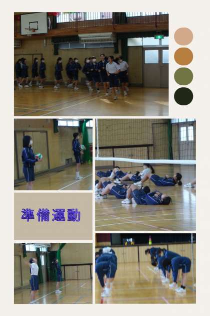 2年生女子の体育授業では、バレーボールを行っていました。 準備運動として、ランニング、体操、補強運動、柔軟運動などを入念に行いました。