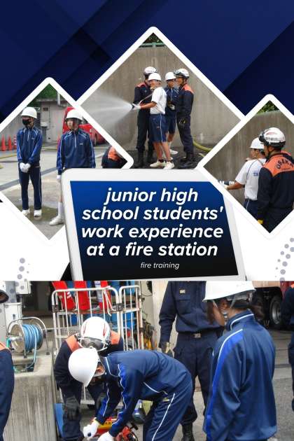 また、テレビなどで目にする消火ホースの収納作業にも挑戦。想像以上の重さと、少しの緩みも許されない正確な作業に、生徒たちは悪戦苦闘。消防士の方々の素早い手本と比べながら、チームで協力してなんとか巻き終え、道具を大切に扱うことの難しさと重要性を実感したようです。