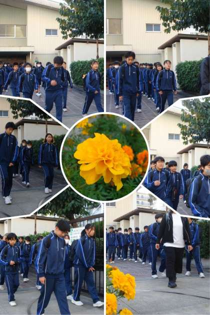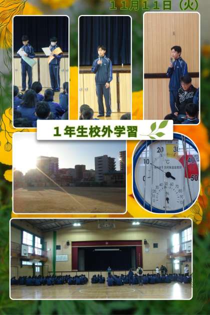 快晴の朝、7時現在9度。本日は冷え込んでいます。 1年生は7時25分に集合し、大東市立野外活動センター『キャンピーだいとう』へ校外学習に出かけました。
