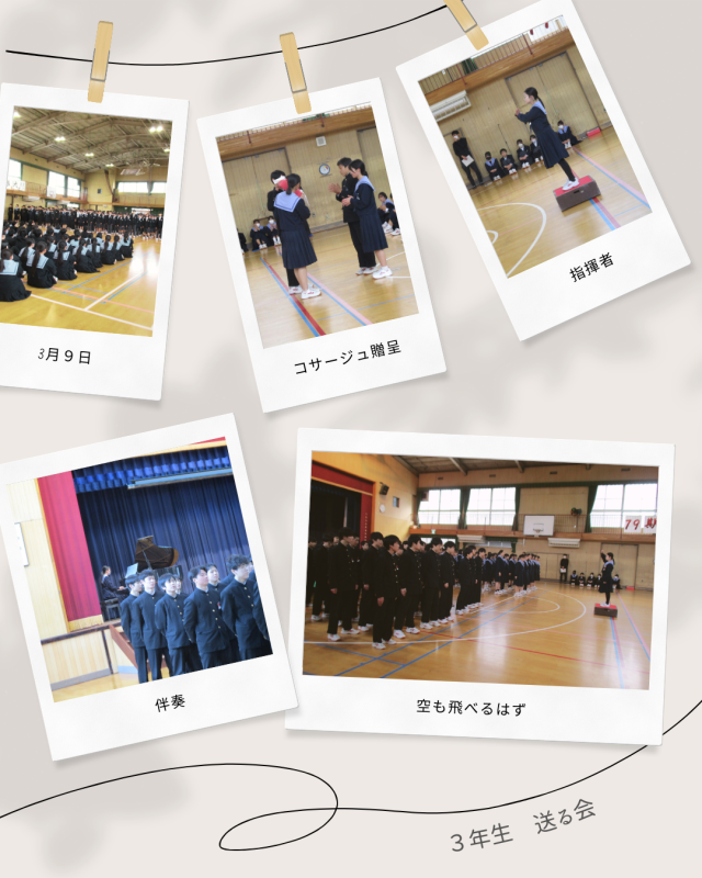 1・2年生から3年生へ「3月9日」の歌が贈られ、3年生からは「空も飛べるはず」の歌が披露されました。