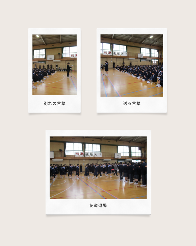 在校生代表からの送る言葉、3年生代表からの別れの言葉もあり、それぞれの思いが伝わる時間となりました。