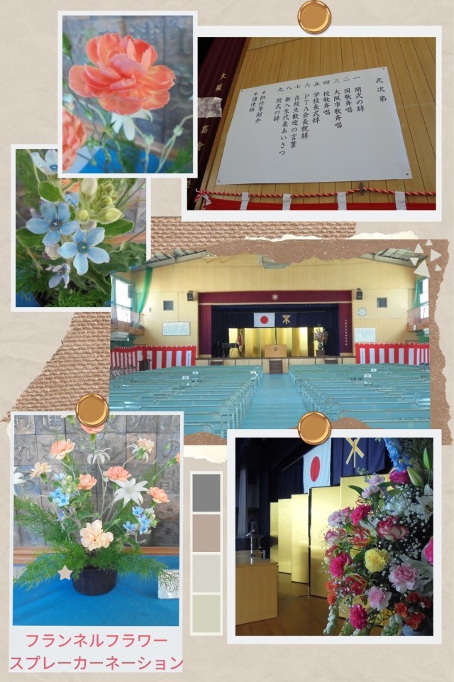 新入生を一番に迎える玄関には、昨日、地域の方が心を込めて生けてくださったお花が飾られています。