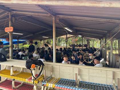 ほぼ予定通り、14:40ごろに学校へ到着し、体育館にて解散式を行いました。最後は『今日の日はさようなら』をみんなで歌い、一泊移住を締めました。