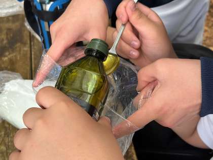 一人ひとりに分けられた粉入りの袋に、水をいれて、オリーブオイルを入れてこねると。。。
