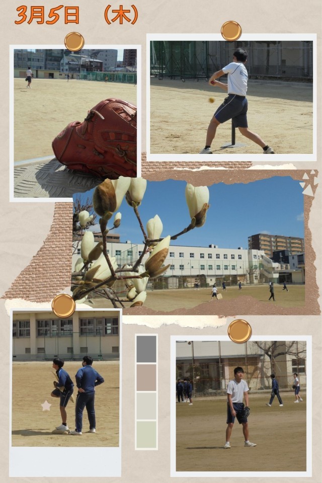 三年生の男子が、春の暖かな日差しの中で「ベースボール型ゲーム」を楽しみました。