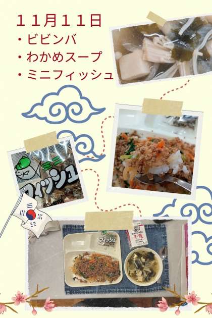 今日はビビンバです。ご飯にかけて食べるメニューは大人にも生徒にも人気です。