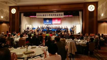 4/7(日)桜宮小学校同窓会が太閤園で行われ、本校吹奏楽部が演奏しました。創立110年になる桜宮小学校は、同窓会でもたくさんの卒業生の方が参加されていました。後輩の演奏に喜んでいただけたようでした。