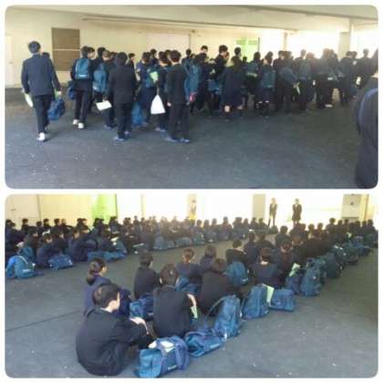 4月8日(月)午前8時15分、新2年生はピロティーに旧クラスで集合しました。