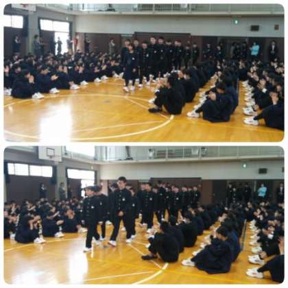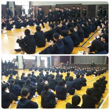 入学式では一部の在校生しか参加できないため、全2・3年生で新入生を迎える式典です。