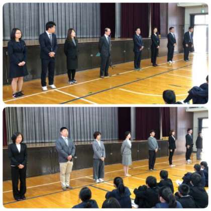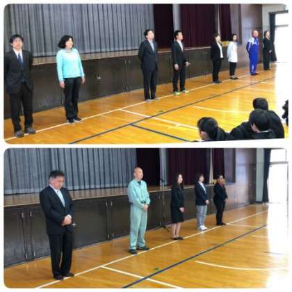 今年度着任された先生方の紹介に続いて、各学年担当の先生方、学校全体にかかわる教職員が学校長から紹介されました。