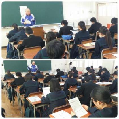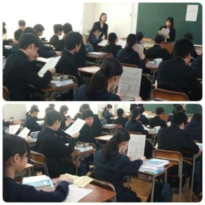 教科書、プリント類が配られ、最後に担任の先生から学級経営についての話がありました。いよいよ中学校生活を締めくくる1年が始まりました。