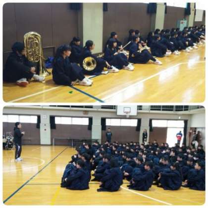 各部の紹介の後、坂本先生から部活動への参加や体験入部の注意事項について話がありました。