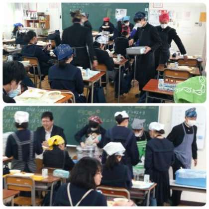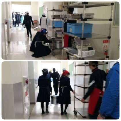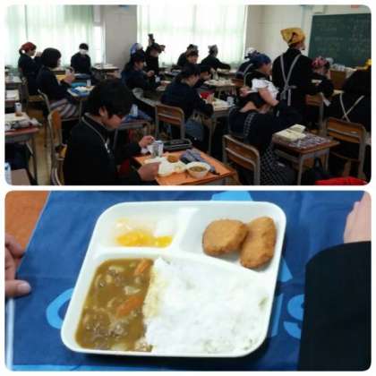 今日のメニューは、カツカレーライス、フルーツ白玉です。