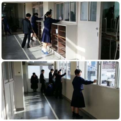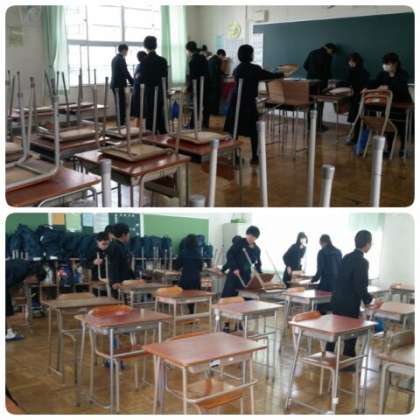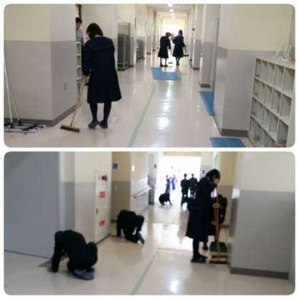 6時間目終了後、各クラスの清掃場所を班単位で全員が清掃します。