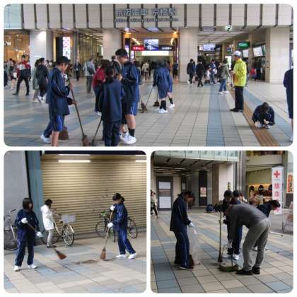 京阪京橋駅とJR京橋駅の連絡通路もきれいに掃き掃除をしました。