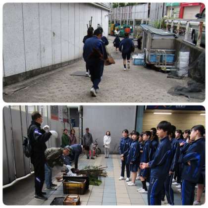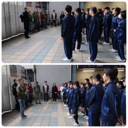 吉江校長先生、森PTA会長の挨拶のあと、PTA環境美化委員会の皆さんの指示で清掃用具を2年生が取りに行ってくれました。