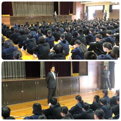 校長先生の座右の銘の一つを紹介します。「為せば成る、為さねば成らぬ何事も、成らぬは人の為さぬなりけり」江戸時代後期、米沢藩(山形県)藩主の上杉鷹山が家臣に教訓として詠み与えた歌です。『為す』とは行動するという意味、『成る』は出来るという意味です。どんなことに対しても、強い意志を持って立ち向かっていけば必ず成就するという、やる気の大切さを説いた言葉です。。毎日をどのように過ごすかによって、自分の人生そのものが変わってきます。自分の未来のために、決してあきらめることなく、何事にも全力でチャレンジし、夢や目標に向かって努力してください。