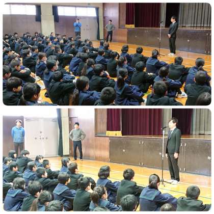 教務主任の川西先生から、今日より本校に勤務される理科の前田先生の紹介があり、前田先生から挨拶がありました。